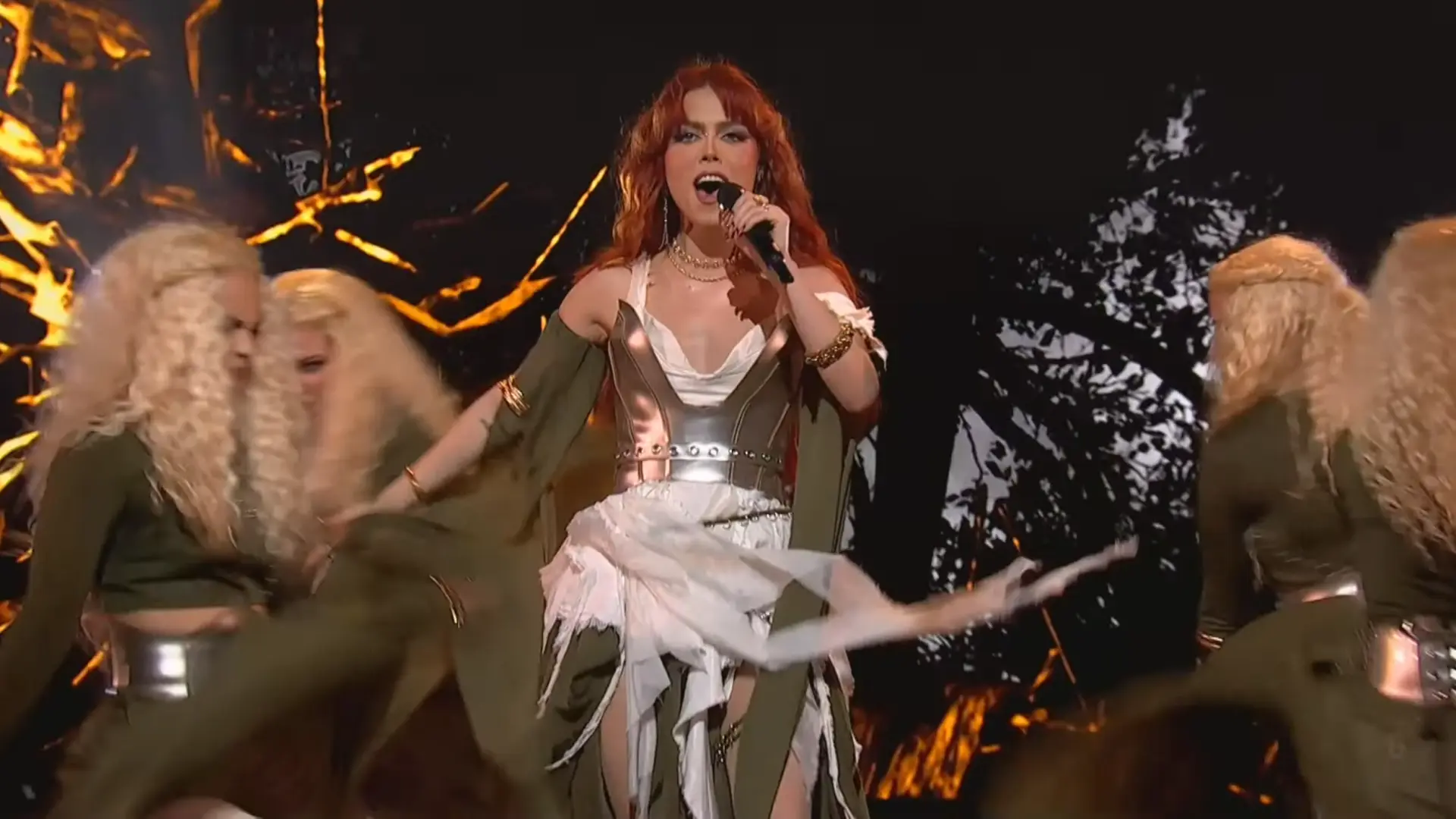 Sa četiri plavokose plesačice na sceni, Zona je plenila izgledom i energijom. Imala je zanimljiv scenski nastup u kojem je nastupila kao gorska vila, sa plesačicama čiji su koraci ali i haljine doprineli da sve izgleda bajkovito.