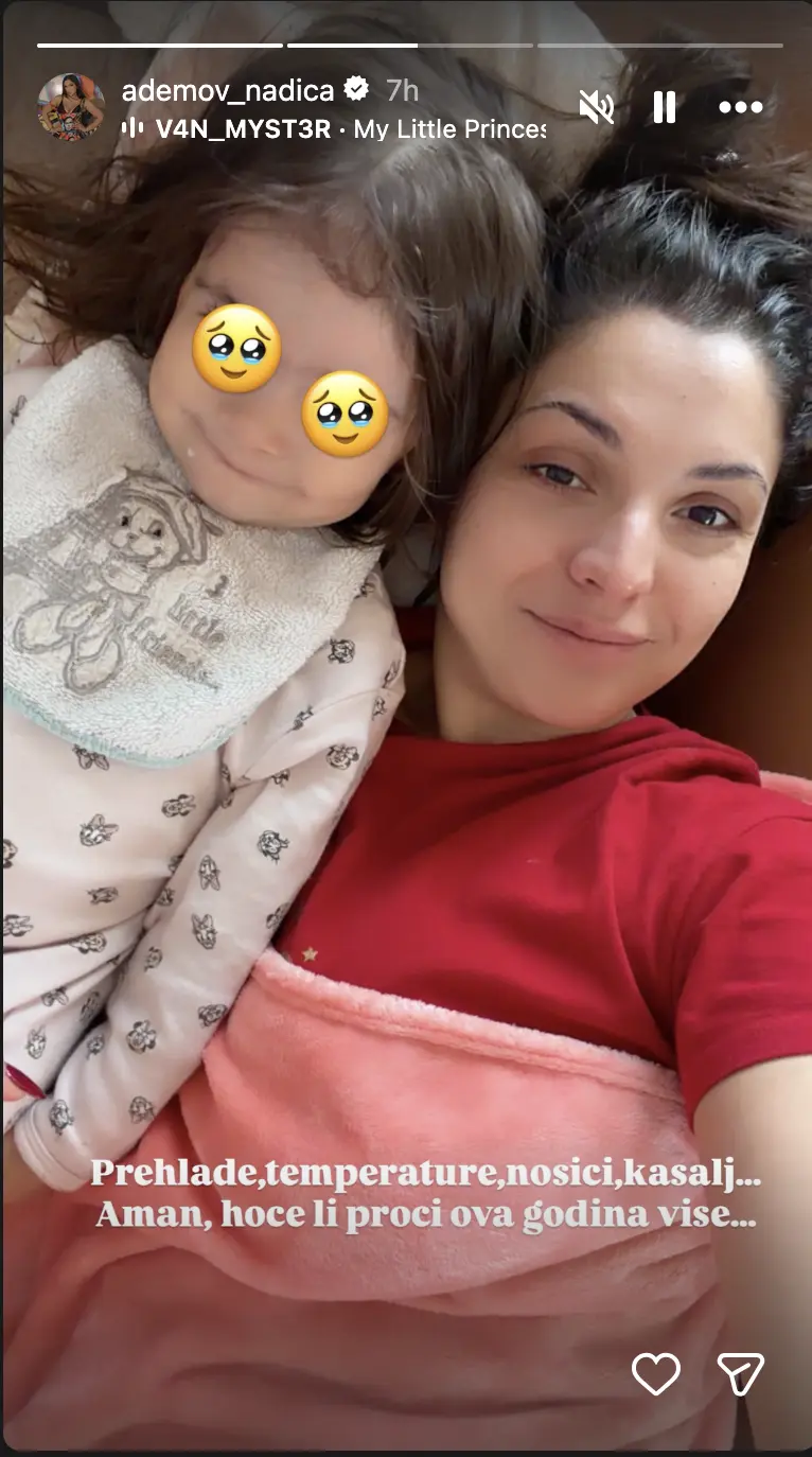 Naime, Nadica se oglasila fotografijom iz kreveta, na kojoj pozira sa naslednicom, dok se obe bore sa jakim gripom koji ovih dana hara širom Srbije.