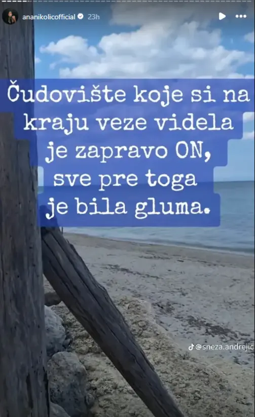 "Čudovište koje si na kraju veze videla je zapravo on. Sve pre toga je bila gluma", podelila je Ana citat.