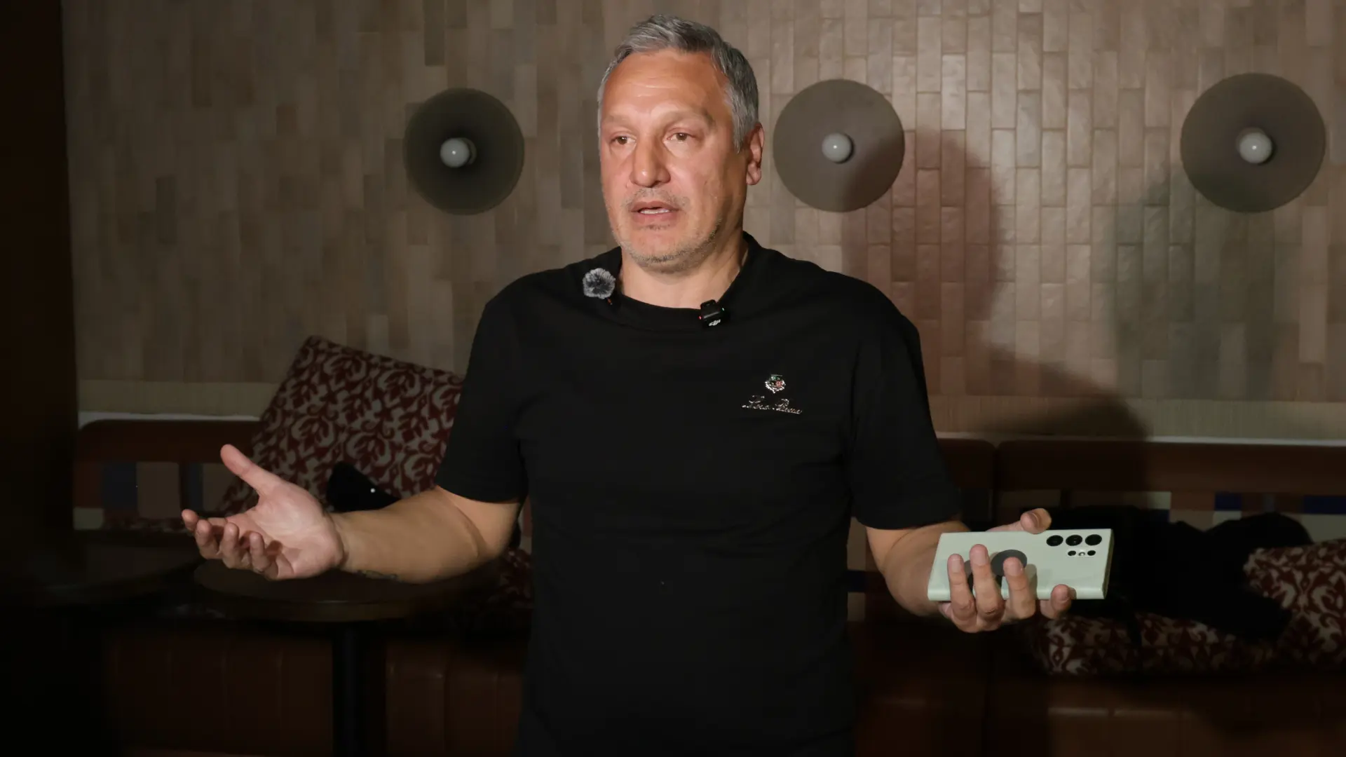 "Super je osećaj, preuzbuđen sam, dobro se osećam, večeras pazim na goste. Nisam svestan koliko vreme leti, ja imam 54 godine... Luna je postala zrela žena, predana majka; sve je u najboljem redu, znate šta se sve dešavalo, od mog razvoda i da se ne ponavljam. Super je osećaj da su se svi životni trzajevi smirili i da su odnosi kako treba i neka sve ostane ovako", počeo je Gagi, dodajući da je na poklon doneo kovertu.
