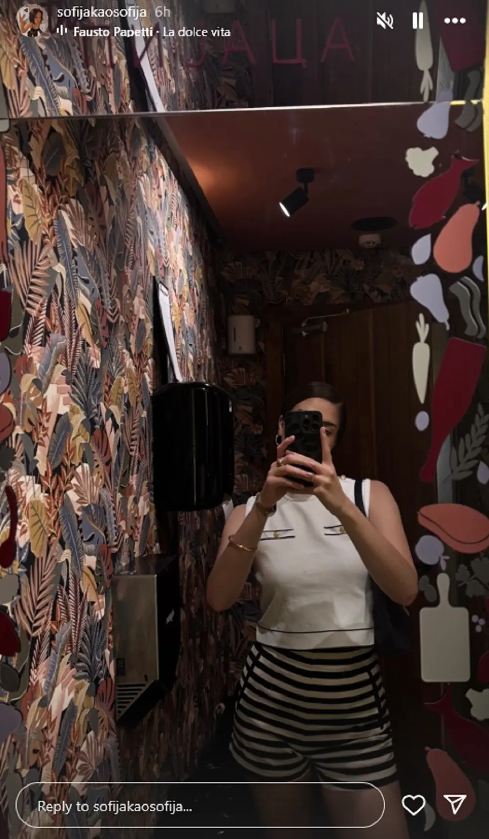 Bivša Kebina snajka je, pošto je informacija o kraju braka sa mlađim Kojićem procurila u javnost, na društvenoj mreži Instagram objavila fotografiju na kojoj pozira u ogledalu u letnjoj kombinaciji, šortsu na pruge i beloj majici, uz pesmu "La dolce vita", odnosno "Uživanje u životu".