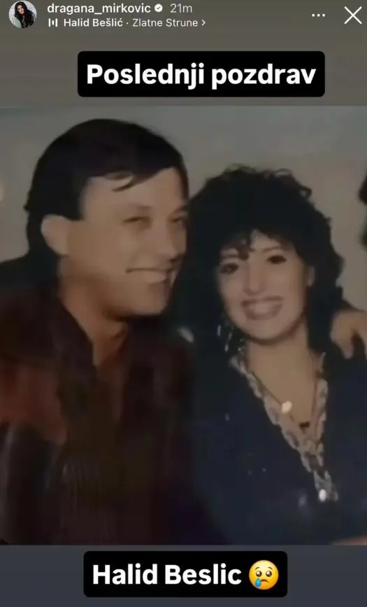 "Poslednji pozdrav. Halid Bešlić", napisala je Dragana Mirković uz emodži sa suzama u očima.