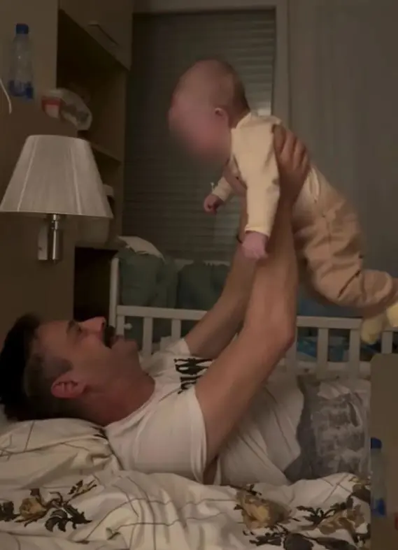 Glumac je ležao na krevetu i u naručju je držao sina pa ga je podizao i spuštao što je mališanu prijalo.