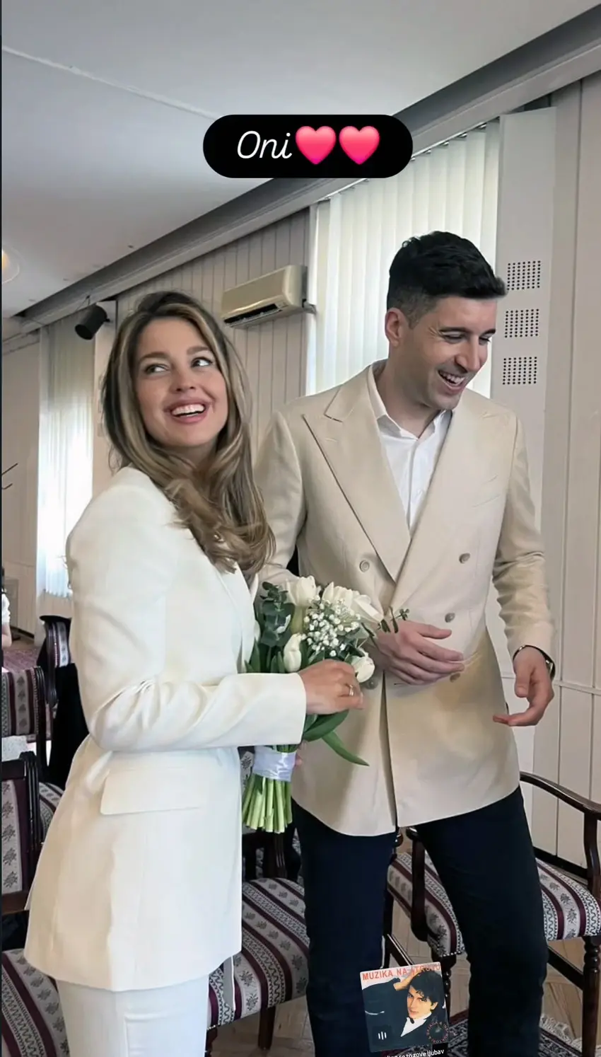 Nina Nešković je sa partnerom i hirurgom Dankom Milinkovićem sudbonosno "da" izgovorila najpre u opštini, a blistala je u belom odelu, dok je mladoženja imao krem sako i tamne pantalone.