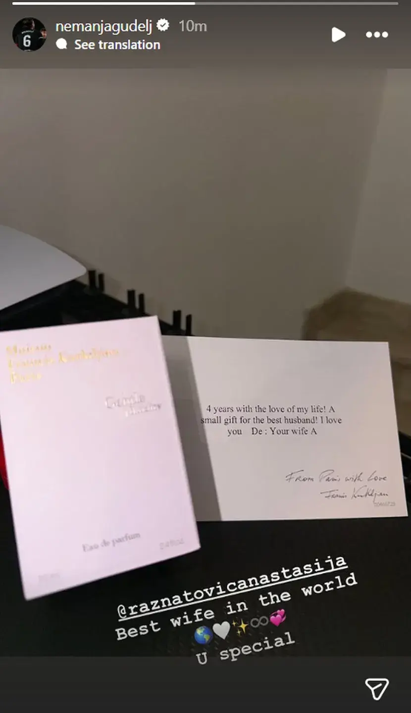 Dirnut ovim posebnim poklonom ali i emotivnom porukom koju mu je supruga posvetila, Nemanja se odmah oglasio te podelio na Instagramu i poklon i posvetu.