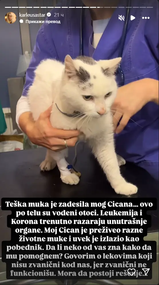Karleuša je javno zatražila pomoć od svojih fanova kako bi pomogla svom mačku koji se bori za život.