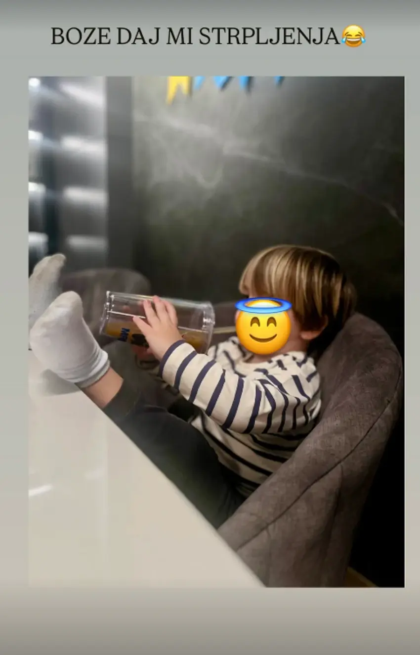 Marija Šerifović danas je objavila jednu simpatičnu fotografiju na kojoj dečak Mario sedi na stolici, noga podignutih na stolu. On pije sok iz čase na slamku i doslovno uživa.
