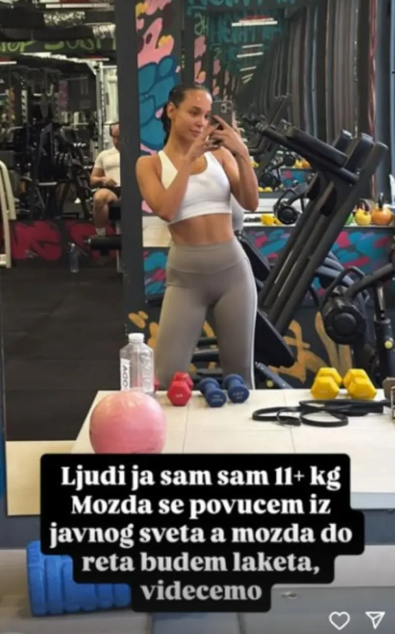 "Ljudi ja sam 11 plus kilograma. Možda se povučem iz javnog sveta, možda do leta budem raketa, videćemo", napisala je pevačica.