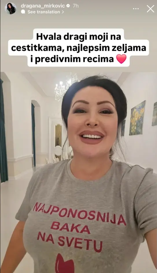 "Hvala dragi moji na čestitkama, najlepšim zeljama i predivnim rečima", napisala je.