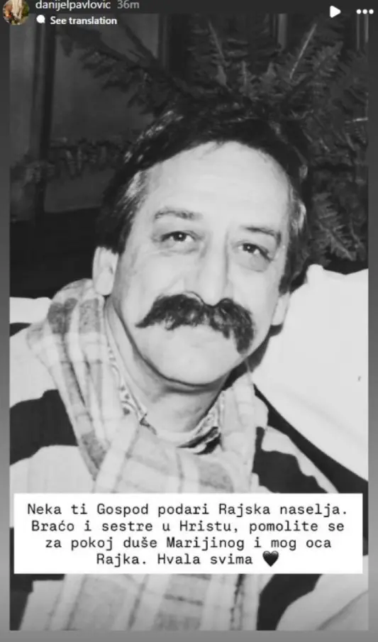 "Nek ti Gospod podari Rajska naselja. Braćo i sestre u Hristu, pomolite se za pokoj duše Marijinog i mog oca Rajka. Hvala svima", napisao je on.