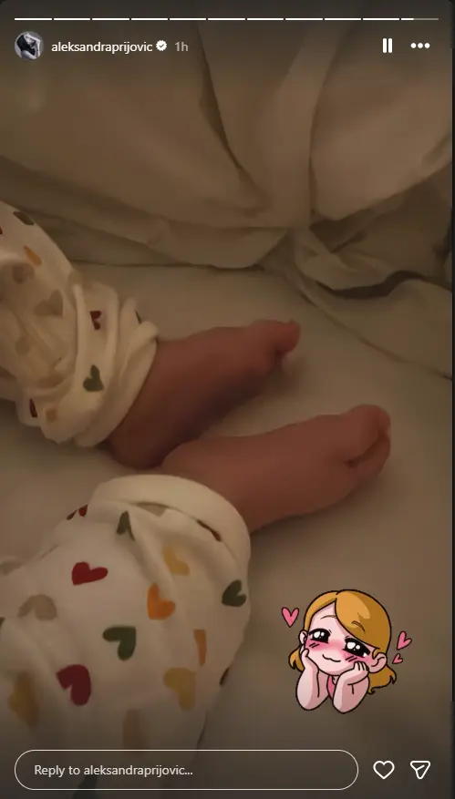 Aleksandra Prijović ovog jutra nije mogla da odoli, a da ne zabeleži najslađe bebine nožice. Aria je bila u pidžami sa srcima i ležala pored mame, a iako ne deli gotovo nikakve detalje porodice na Instagramu, danas je napravila izuzetak.