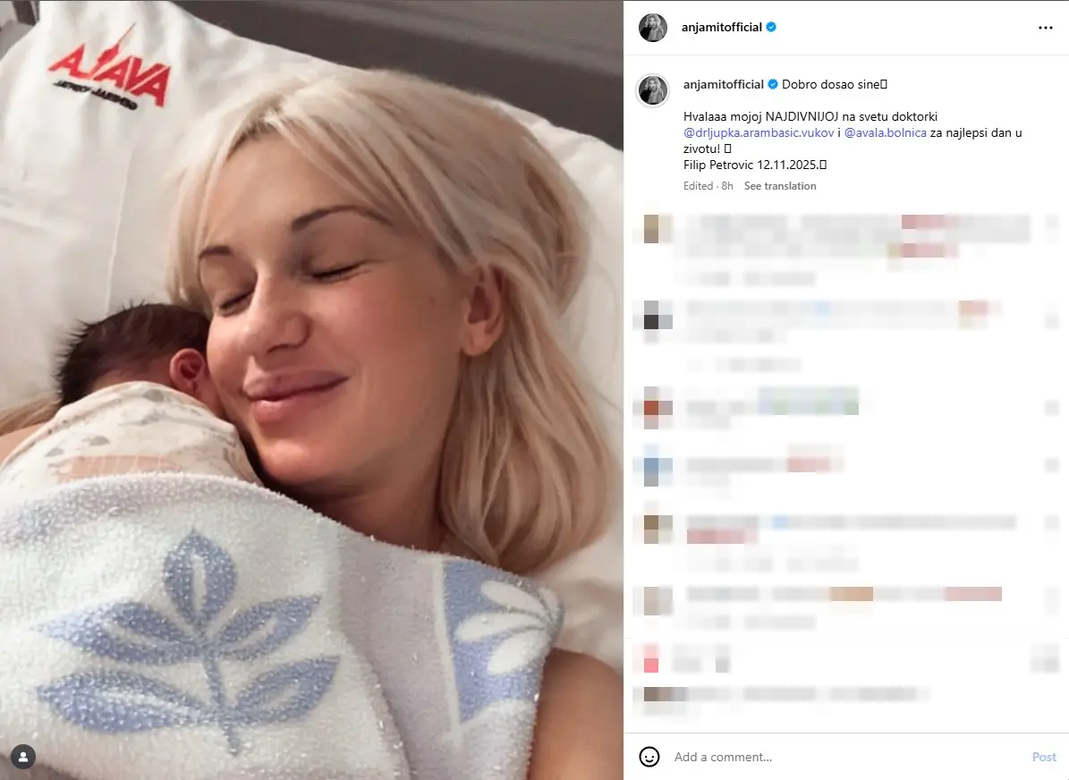 Ponosni tata, košarkaš Vladimir Petrović, ne krije sreću zbog rođenja sina Filipa, a Anjine mnogobrojne kolege i prijatelji šalju čestitke i poruke podrške novopečenoj mami.