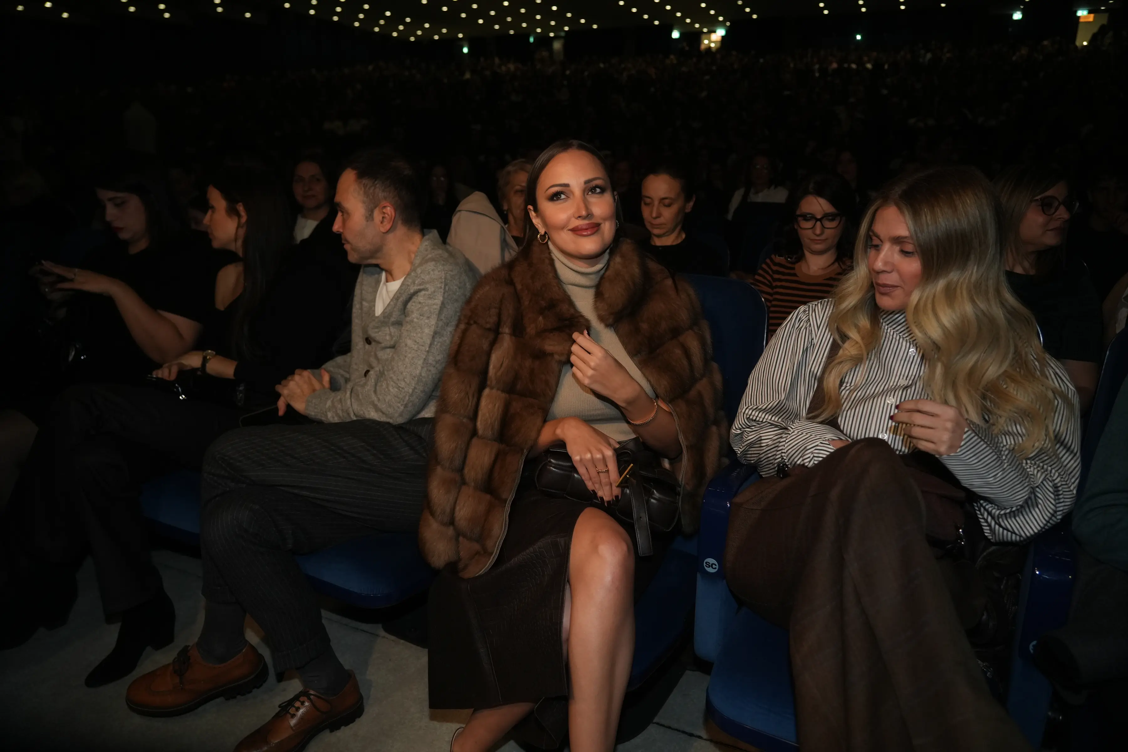 Tea je bundu ponela preko bordo haljine i bež čizmi, Aleksandra je kombinovala braon kožnu suknju i bež rolku sa luksuznom bundom, dok je Marija Mikić nosila elegantnu bundu u tamnijem tonu.
