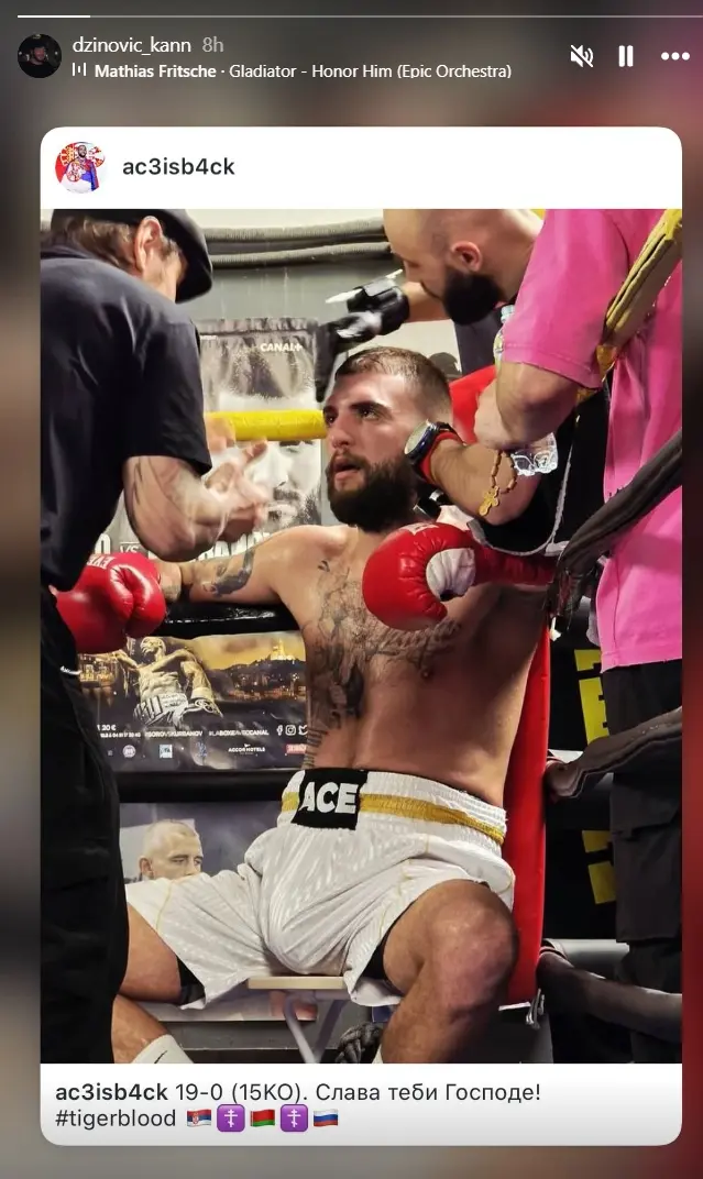 Kan je na Instagramu podelio snimak Veljka Ražnatovića iz ringa nakon pobede u Moskvi, čime mu je javno čestitao na velikom uspehu.