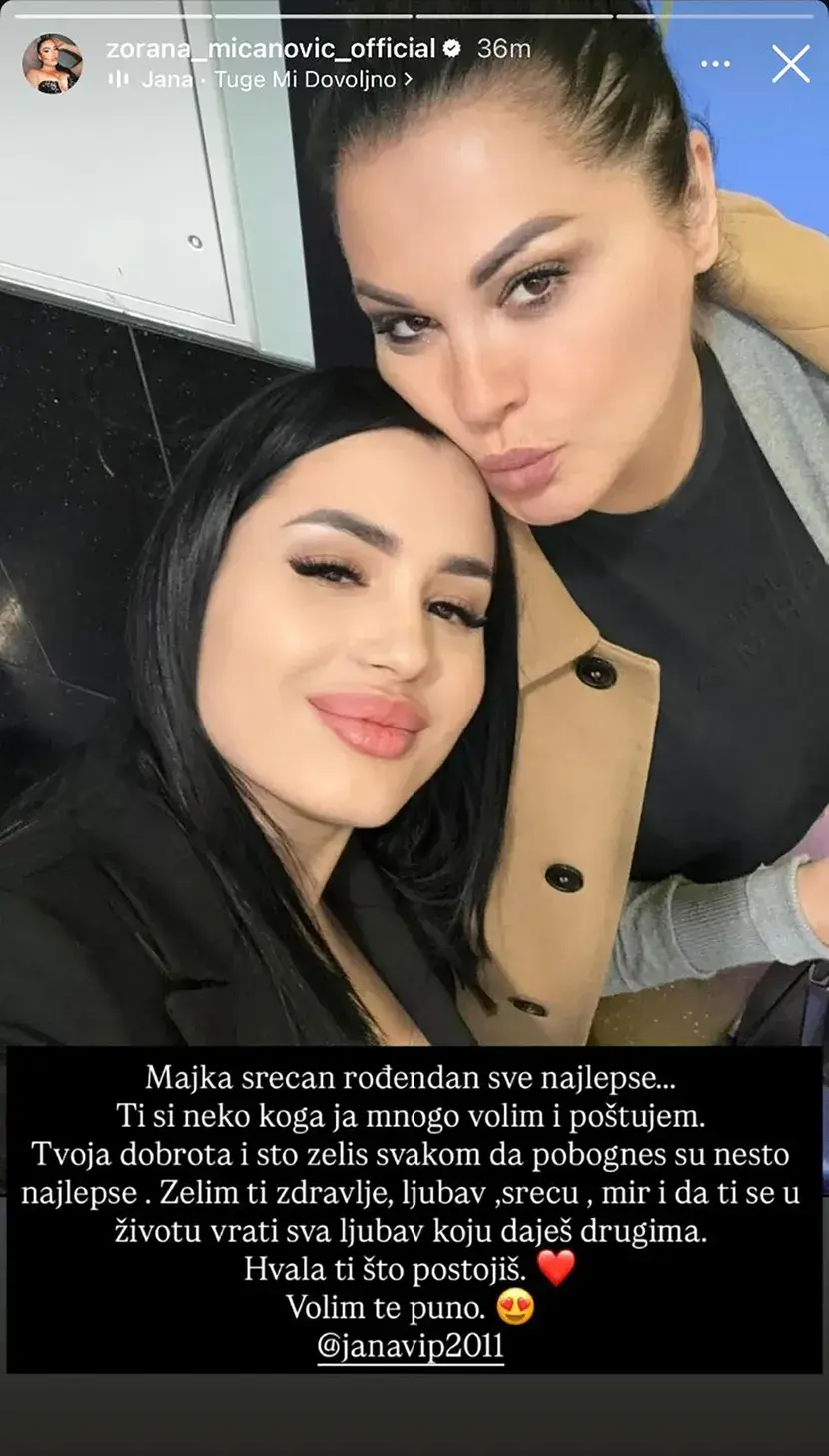 - Majka, srećan rođendan, sve najlepše! Ti si neko koga ja mnogo volim i poštujem. Tvoja dobrota i što želiš svakom da pomogneš su nešto najlepše. Želim ti zdravlje, ljubav, sreću, mir i da ti se u životu vrati sva ljubav koju daješ drugima. Hvala ti što postojiš. Volim te puno - napisala je Zorana uz stiker crvenog srca.