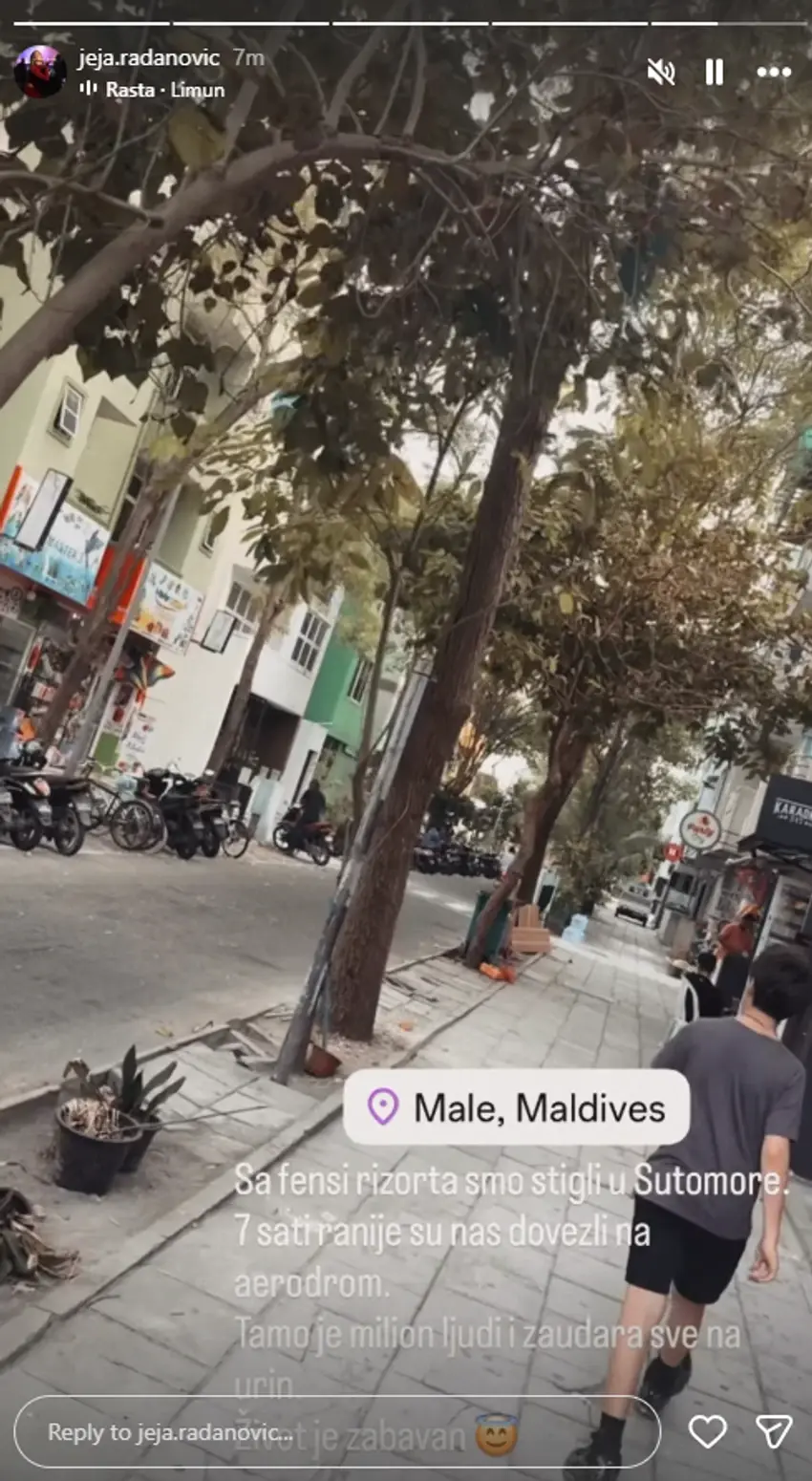 "Sa fensi rizorta smo stigli u Sutomore. 7 sati kasnije su nas dovezli na aerodrom. Tamo je milion ljudi i zaudara sve na urin. Život je zabava", napisala je Jelena Radanović.