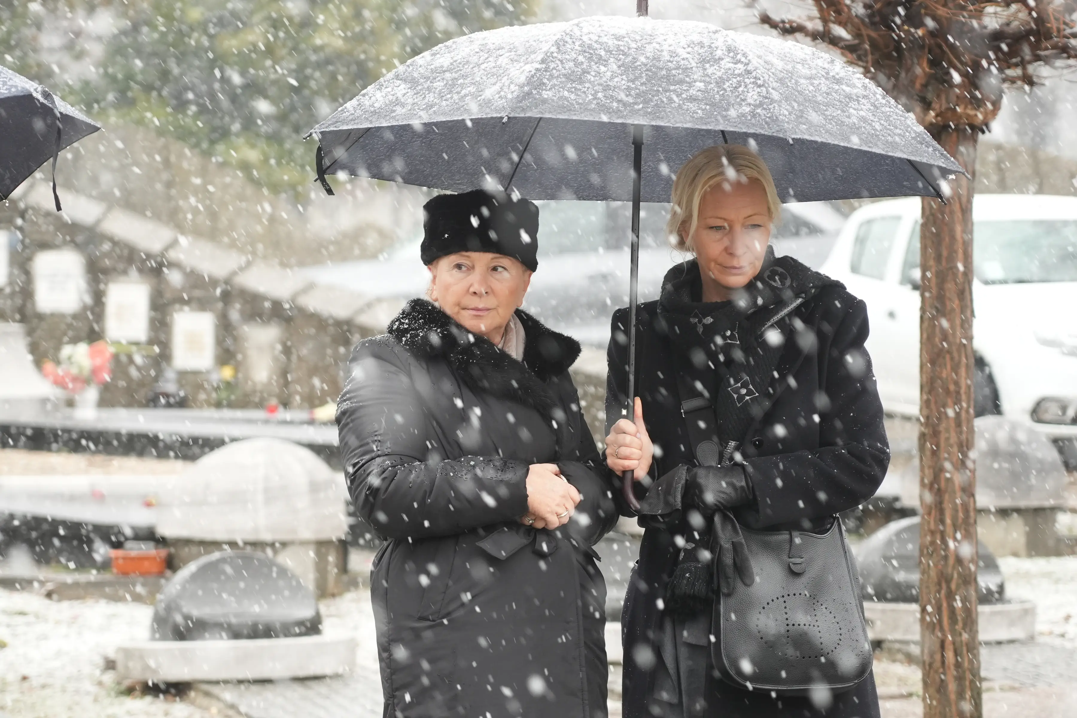 Nije mogla da zaustavi suze, sve vreme je držala ruke ispred lica, kao da se moli, a u jednom trenutku je pomazila Šabanovu fotografiju koju je prekrio sneg.