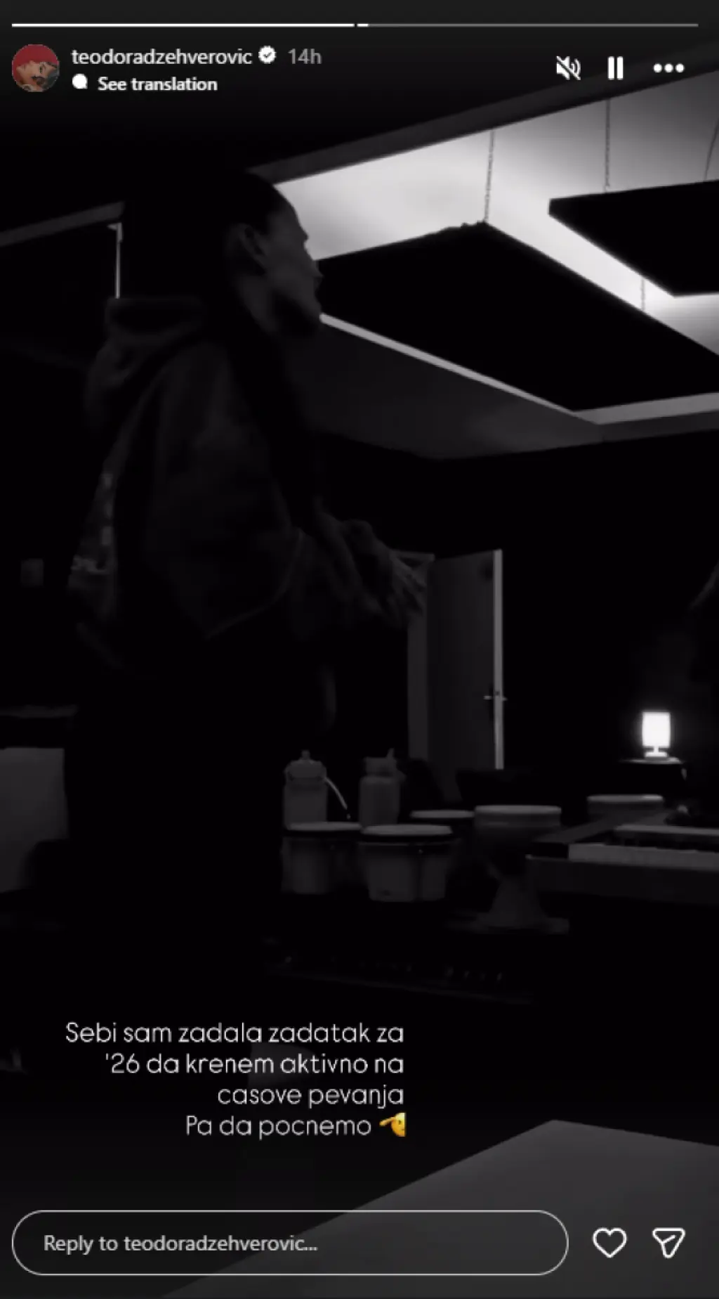 "Zadak koji sam sebi postavila za 2026. godinu jeste da aktivno krenem na časove pevanja. Vreme je da počnemo", poručila je Teodora na Instagramu.