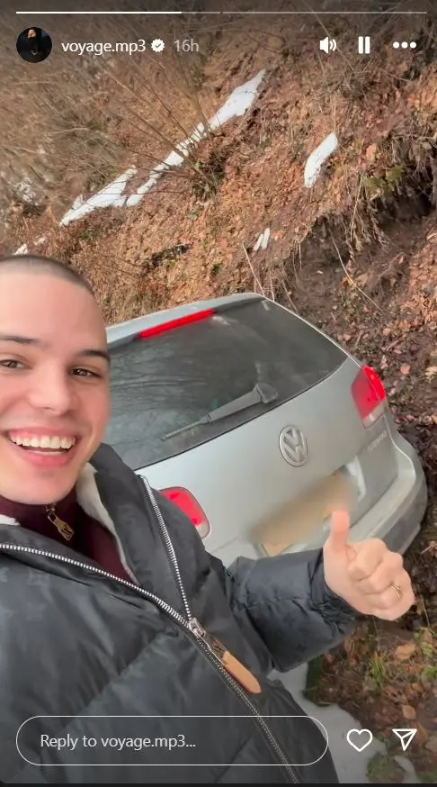 Vojaž je objavio snimak na svom Instagram profilu na kojem se vidi da je njegov automobil završio pored puta u jarku.