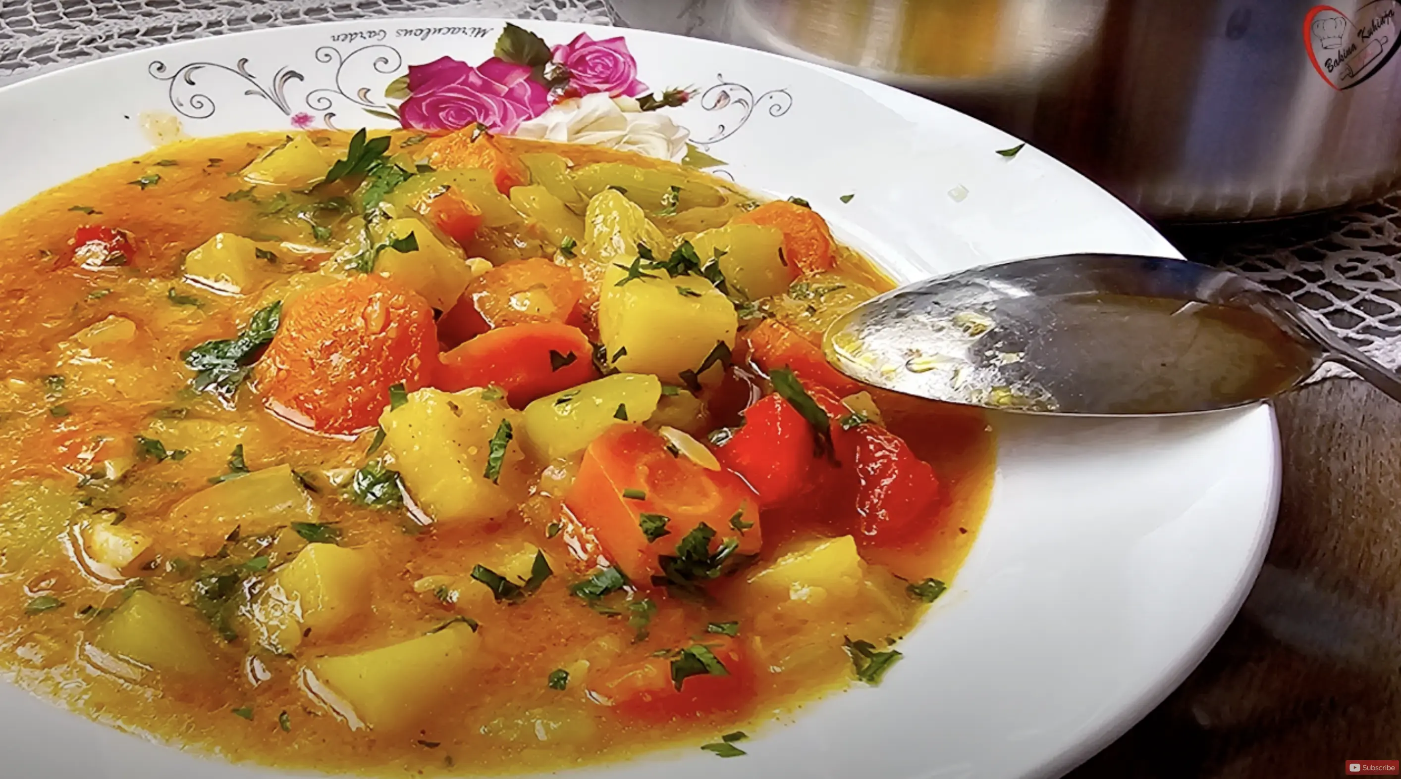 Na ulju propržiti seckani luk i šargarepu. Kad omekne dodati tikvice na kockice, krompir i naliti da ogrezne vode. Kad omekne dodati vode još malo pa kad provri ubaciti paradajz i razmućenu kašičicu griza i slatke paprike.