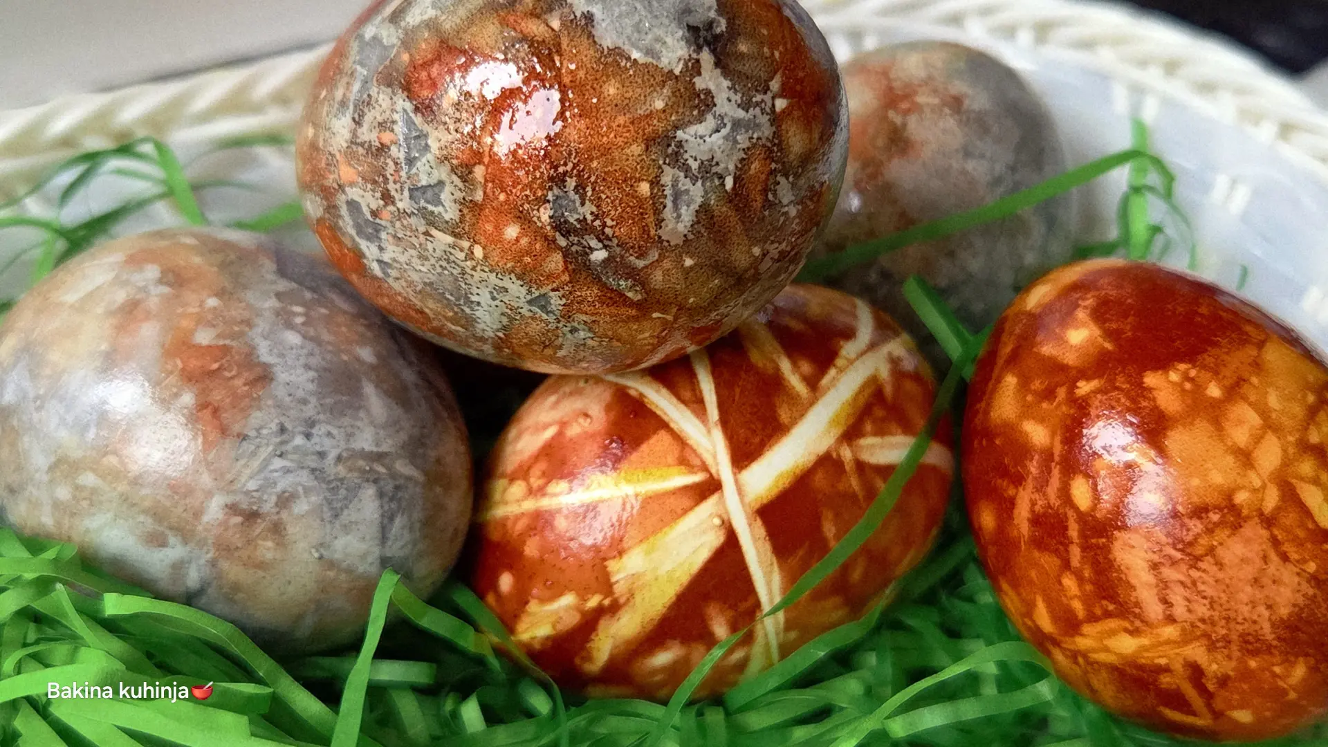 Na samom kraju, svako jaje, bilo da je mermerno, tačkasto ili žuto, obavezno premažemo mašću za visoki sjaj i poređamo u korpicu.