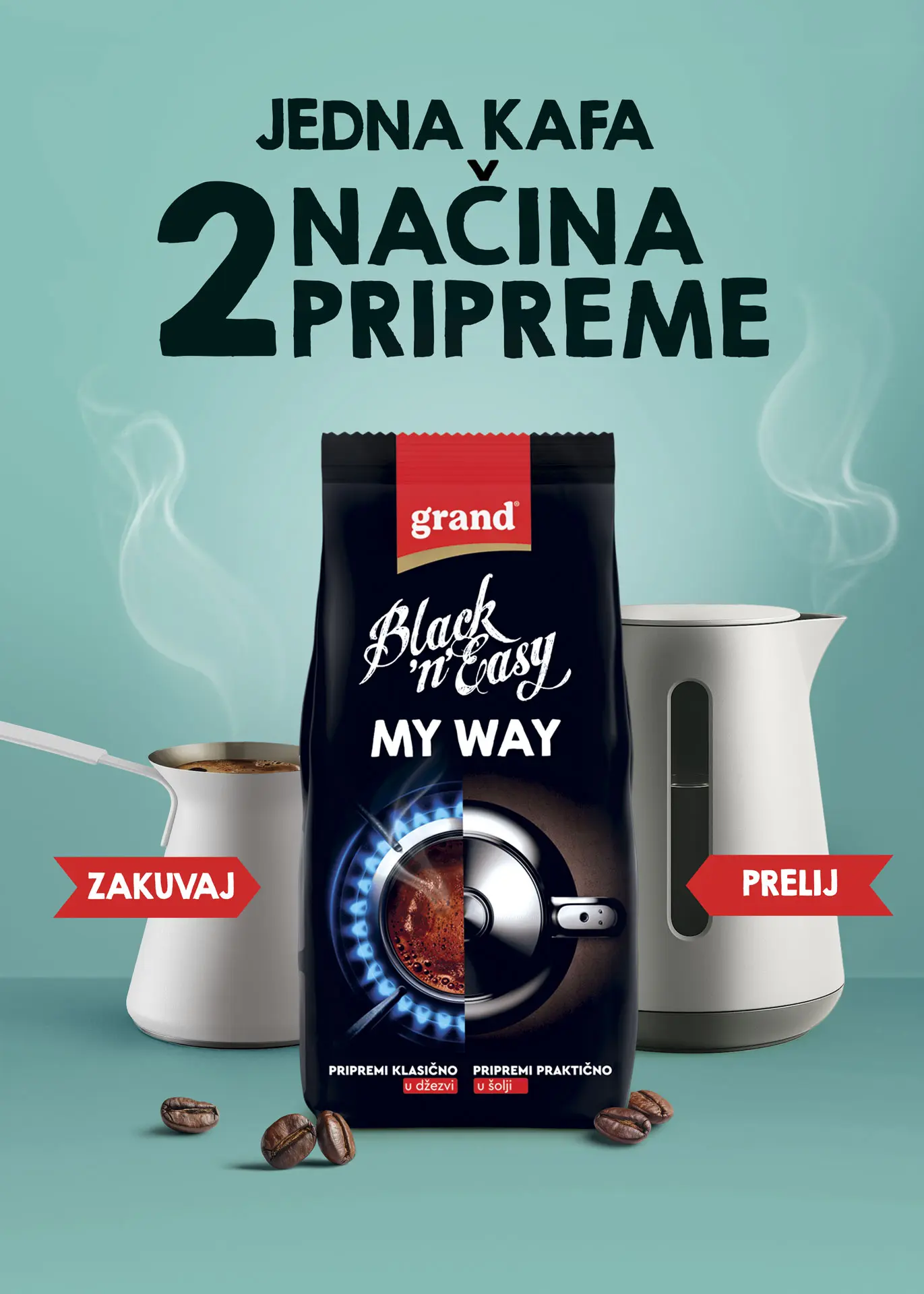 Foto: PromoTurska kafa neizostavni je deo razbuđivanja, uživanja i opuštanja. Ona je na našim prostorima omiljena i najpopularnija i navikli smo da se nikad ne menja, ali nas je i Grand kafa navikla da uvek ide korak ispred, i stalno pomera granice. Tako je upravo predstavila Black’n’Easy My Way, jedinstveni proizvod koji omogućava da se turska kafa priprema na dva načina – jednostavnim prelivanjem u šolji ili klasičnim zakuvavanjem u džezvi – uz isti, prepoznatljivo bogat ukus.