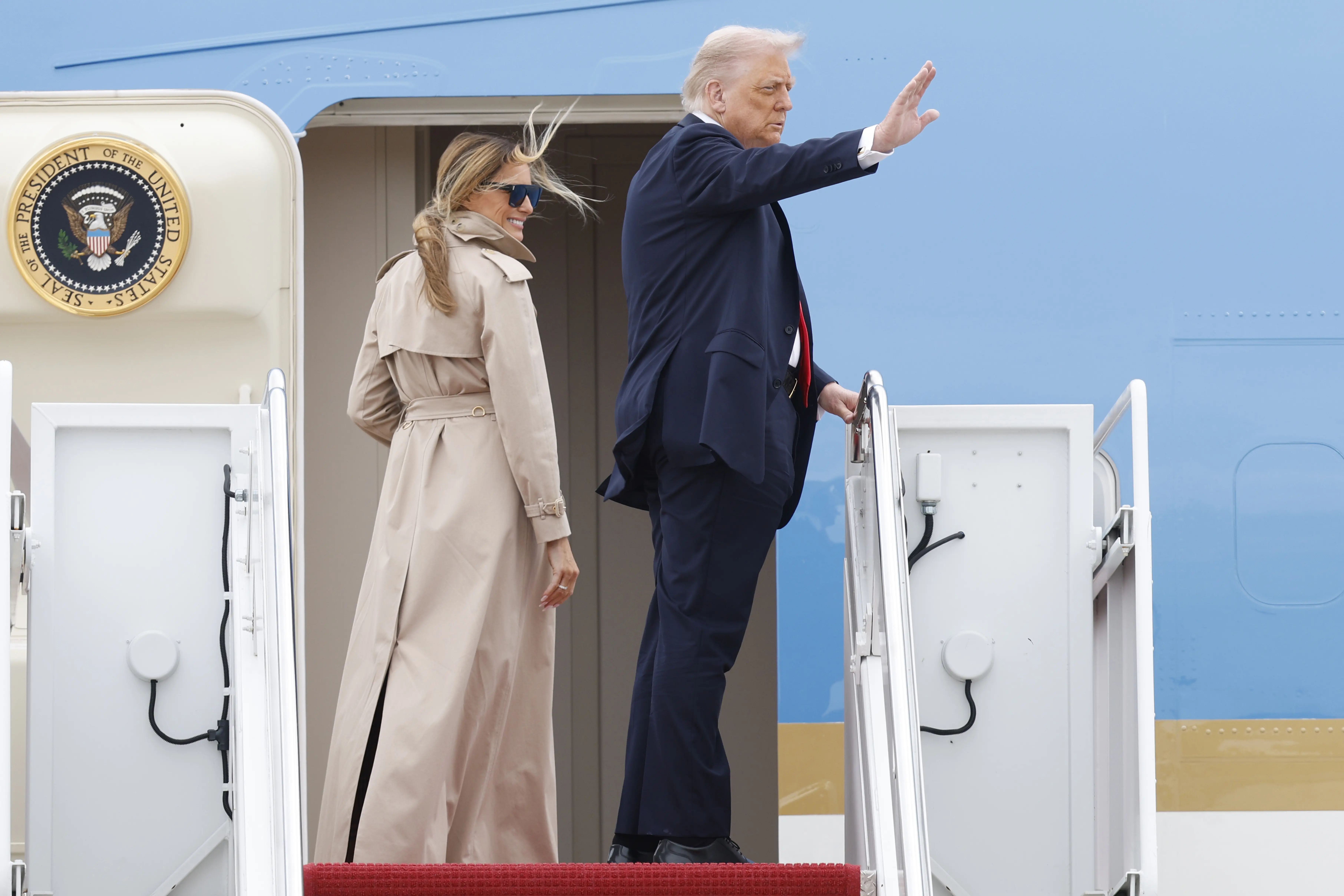 Prva dama je izašla iz aviona držeći se za ruke sa svojim suprugom. Mlađa ćerka predsednika, Tifani Tramp, i njen suprug, Majkl Bulos, takođe su stigli u London sa njima.