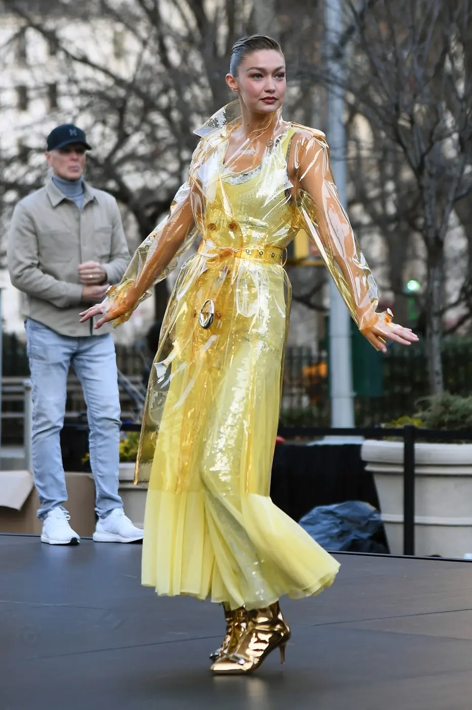 Na reviji brenda "Rabanne" koja se održala u okviru tradicionalne Nedelje mode u Parizu, pojavila se u žutoj lepršavoj haljini, a najveći utisak ostavio je providni trenč mantil.