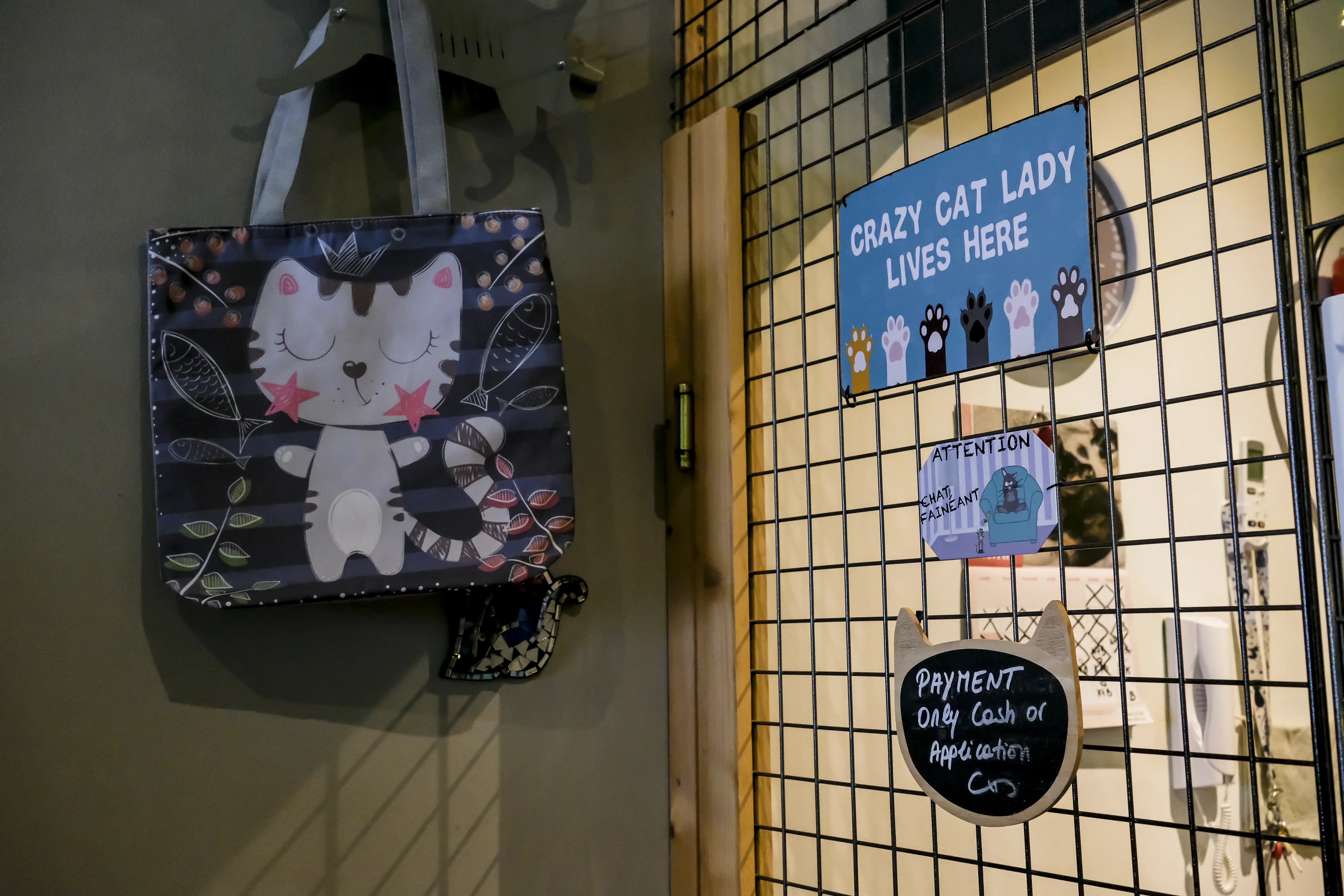Kafić je ukrašen mnoštvom slatkih mačjih predmeta, ima mačja gnezda na više nivoa, igračke i jastučiće u svakom kutku.